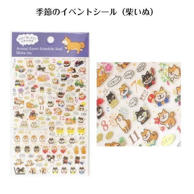 ・季節のイベントシール : 金箔が入った年間予定のスケジュールシールです。 日本の四季ごとのイベントを動物たち (ネコ/柴犬) がかわいらしく表現しています。