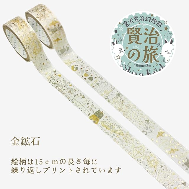 シール堂 日本製 宮沢賢治 箔入り きらぴか マスキングテープ 賢治の旅 金鉱石 2巻 セット Shinzi Katoh 3m巻 ks-dt-20127
