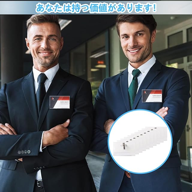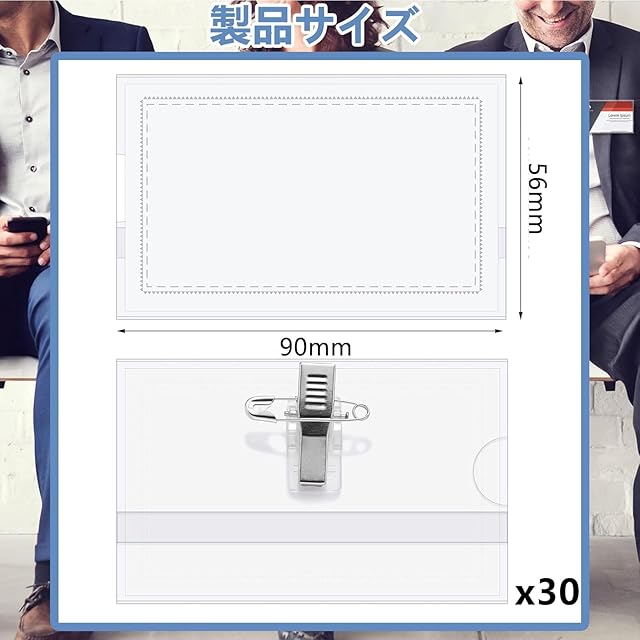 商品名:名刺型名札名刺入れ30枚セットクリップ付き&安全ピン両用IDカード活動社員証明書パーティースクール透明横型安全ピン・クリップ両用型名刺入れ