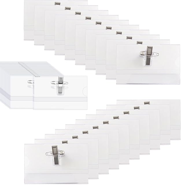 名刺型名札名刺入れ30枚セットクリップ付き&安全ピン両用IDカード活動社員証明書パーティースクール透明横型安全ピン・クリップ両用型名刺入れ