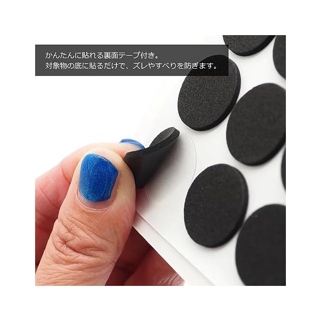 かんたんに貼れる裏面テープ付き。対象物の底に貼るだけで、ズレやすべりを防ぎます。