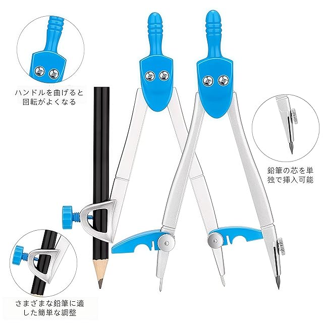 【人間工学に基づいたデザイン】使用中に曲がることがなく、コンパスの頭は持ちやすいです。鉛筆や芯と一緒に使用することができ、コンパスの安全性と使い心地を大幅に向上させます。
