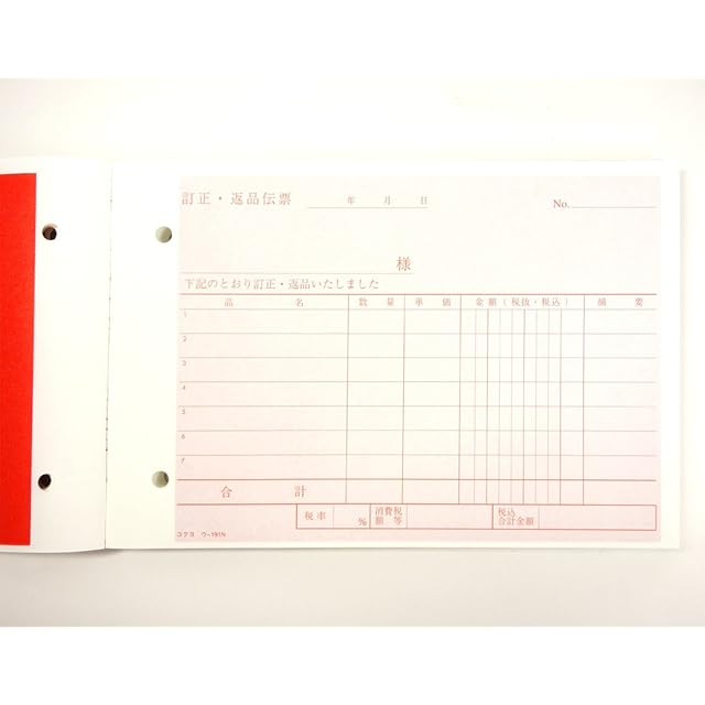 商品名:コクヨ 複写簿 バックカーボン 3枚 訂正返品伝票 B6ヨコ 50組 ウ-191N