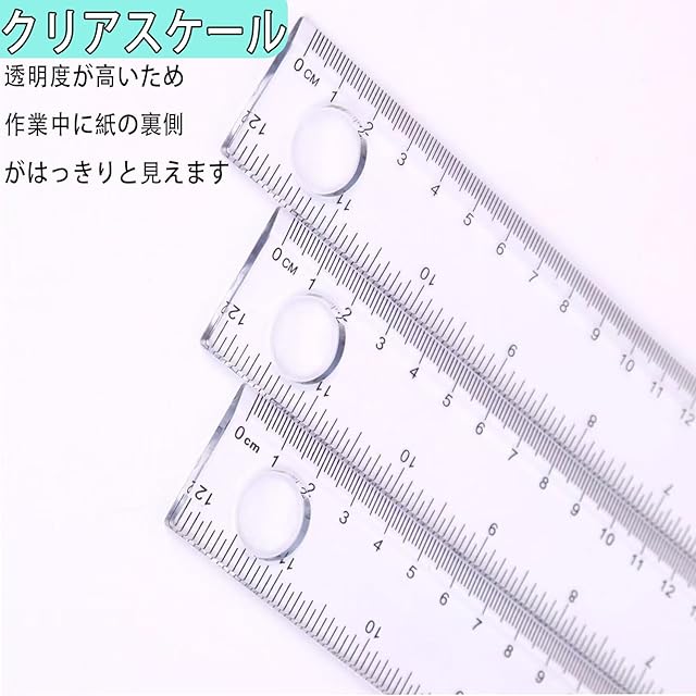 【透明素材】 定規 耐久性のある素材を使用しているため、長期間使用しても変形や劣化しにくいです。高い透明度設計により、作業中に図面の下部がはっきりと見え、快適なユーザーエクスペリエンスを実現します