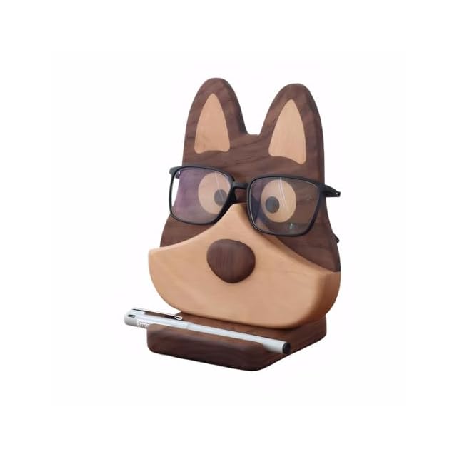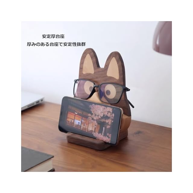 Sakulaya メガネスタンド 卓上 かわいい デスク周り 便利グッズ 眼鏡 メガネ置き スタンド 木製 スマホスタンド おしゃれ 犬型 サングラス 収納 玄関 インテリア デスク収納 癒しグッズ 犬好き プレゼント 贈り物 クルミ材