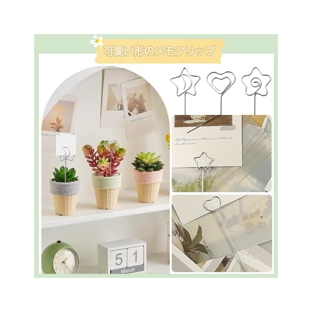 写真メモクリップは取り外して再配置することができます。底にベースがないので、DIYにも適しています。お好きなベースを選んで、紙のメモや写真を一緒に挟むことができます。クリップホルダーを自宅やオフィスのテーブルに置いて、何かを思い出すことができます。