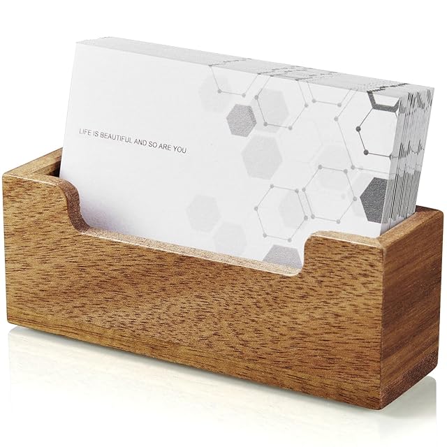 シンプル&高級感 木製名刺スタンド(アカシア 木目) デスクに洗練された印象を与える、天然木製の名刺ホルダー。ビジネスシーンにぴったりな、上品で実用的な一品です。
