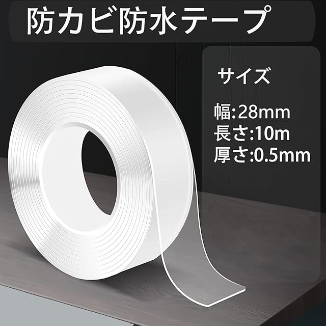 防カビ 防水テープ マスキングテープ 透明 防水テープ 補修テープ 台所コーナーテープ コンロの隙間テープ キッチン すきまテープ キッチンテープ カビ汚れ防止 防カビ 防水 防油 強粘着 耐熱 のり残らず 繰り返し 洗濯可能 ベランダ 台所 キッチン お風呂 バスルーム 浴槽まわり 浴室 洗面台用など (幅2.8CM*長さ10M*厚さ0.5MM) ✅【防水・防汚・防油・防カビ】: 新しくアップグレードされたアクリル素材は、より密度の高い分子構造を持ち、テープの内側に強力な保護膜を形成し、防水・防カビ効果が長持ちします。長期間使用してもカビが生えません。隅々まで水垢、汚れ、カビ、ホコリなどの蓄積を防ぎ、浴室やキッチンのカビによる悩みを解決し、安心させます。便器や浴槽の縁への水の浸入を防ぎ、カビや黄ばみを効果的に防止します。 ✅【優れた接着力と残留物なし】通常の補修テープとは異なり、このテープは接着力が極めて高く、耐用年数が長いです。環境に優しく、実用的で、無毒、無臭です。一番人気のポイントは糊が残らないこと!剥がした後も跡が残らない素材を使用しているので、何度剥がしても糊残りしません。 ✅【完全透明】通常の防水テープとは異なり、このテープは完全に透明なデザインを採用しており、任意のサイズにカットできます。使い方は簡単で、あっという間に美しい仕上がりになります。特別な工具は必要なく、適当な長さにカットして、貼りたい場所に貼り付けてしっかり押すだけです。