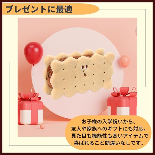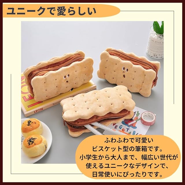 【ユニークで愛らしい】ふわふわで可愛いビスケット型のぬいぐるみ筆箱です。小学生から大人まで、幅広い世代が使えるユニークなデザインで、日常使いにぴったりです。