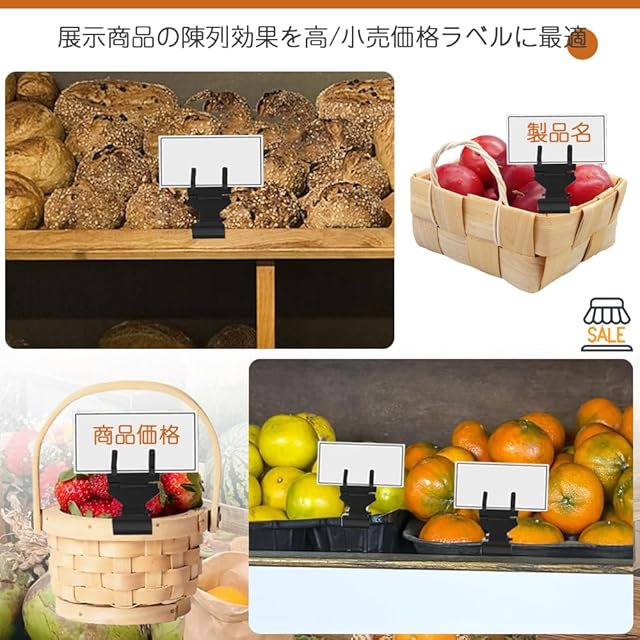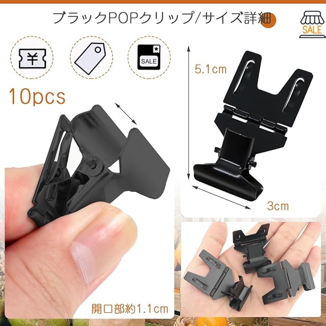 POPクリップ ポップクリップ 金属製クリップ 10個セット 180°回転角度調整可能 クリップ 値札 スタンド プライス用 ディスプレイ サインホルダー 業務用 名刺用 店舗 展示 表示 スーパーマーケット/果物屋台/衣料品店 適用 価格表示(ブラック)