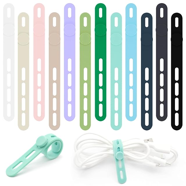 Cinvo ケーブルバンド シリコン 12本セット 4つ穴タイプ ケーブル まとめる 高弾性 コードクリップ 繰り返し使える 洗える 配線止め(全色セット)