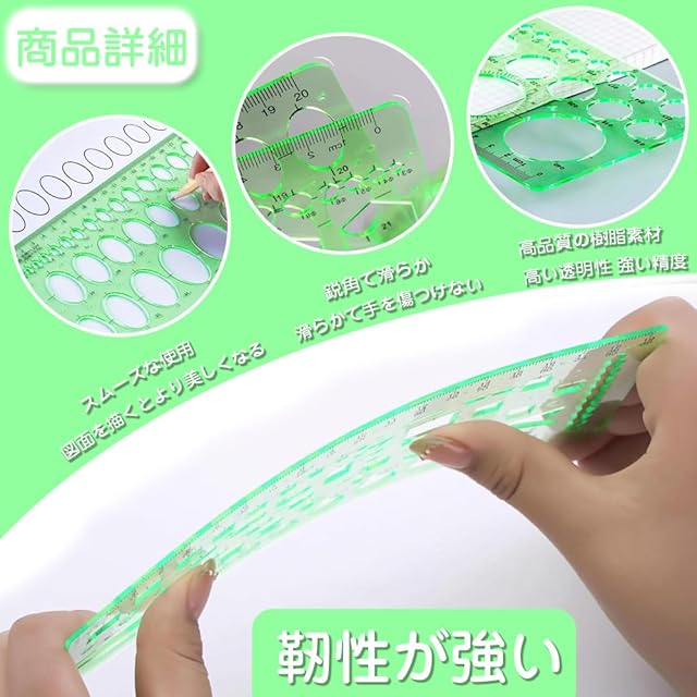 エッジが滑らか:図面定規のエッジが滑らかで、細工が精巧で、好きな図面を自由に描くことができます。