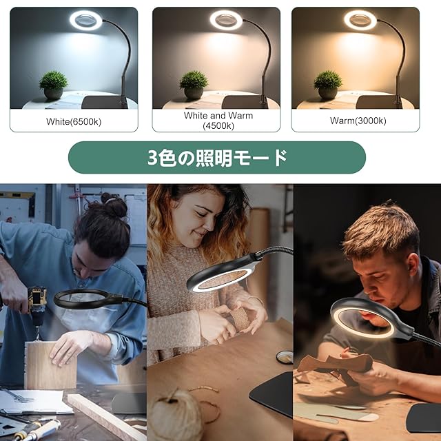 3つのカラーモードと調整可能なライト輝度:ランプとスタンド付きの拡大器は、3つのカラーモードと4つのレベルの調光状態の明るさを提供します。ライト付きデスクトップ拡大ガラスには、最後の使用のモードと明るさを維持するメモリ関数があります。ネイル技術者、メンテナンス担当者、クラフト愛好家の美人、彫刻家などに最適です。