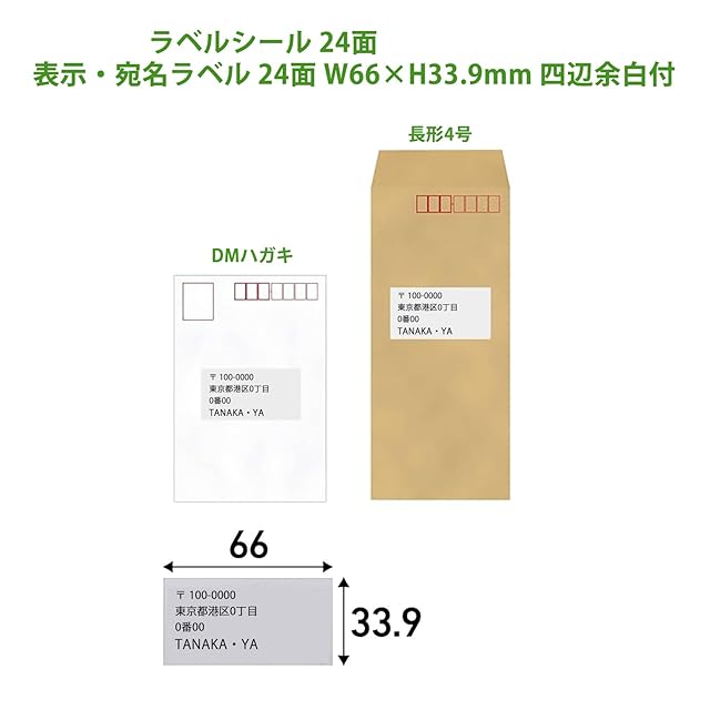 4.シート1枚に24枚のラベルが配置され、ラベルサイズは66×33.9mm。