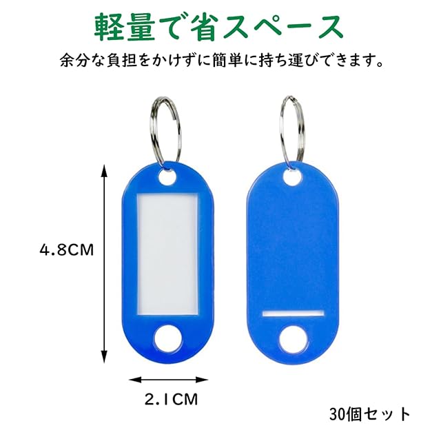 【セット内容】プラスチック製 タグ の キーホルダー 30個セットです。キーホルダーの中には、書き込み可能な見出し用紙が付いています。