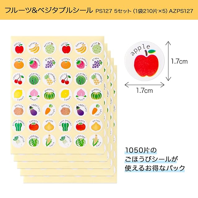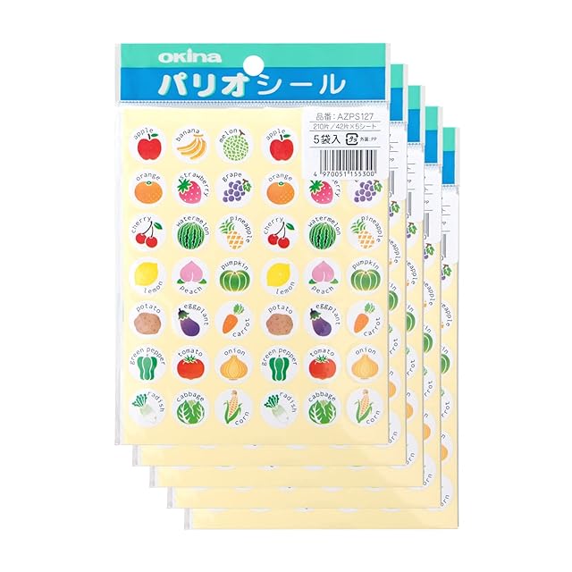 オキナ フルーツ&ベジタブルシール PS127 (42片×5枚入)×5セット AZPS127