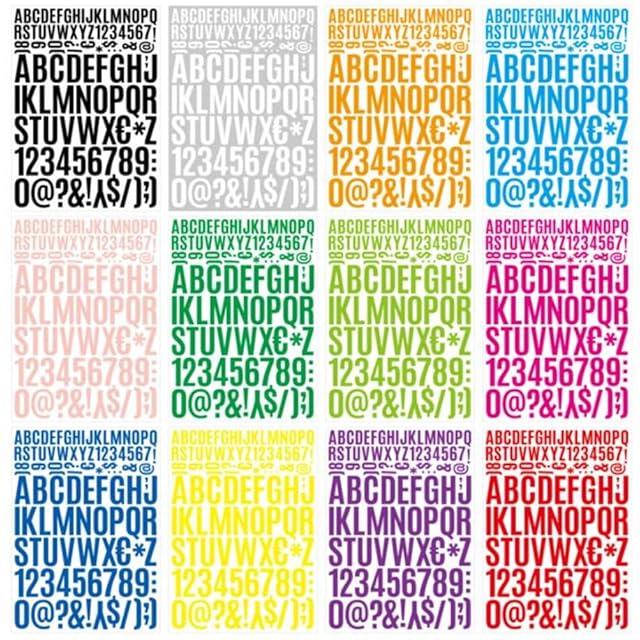 【セット内容】8色のシールセット(赤/青/ホワイト/ブラック/ライトグリーン/イエロー/パープル/オレンジ)が設置され、各シールのサイズは2.9*2.1cm、文字高は2と4cm。ディスプレイのため、実物と画像には誤差がある可能性がありますので、予めご了承ください。