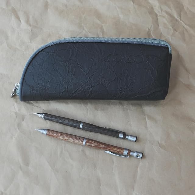 LOONLOON 565 ペーパー ペンケース ブラック 二階建て 多機能 スリムデザイン おしゃれ 和紙風 学生用 ギフト