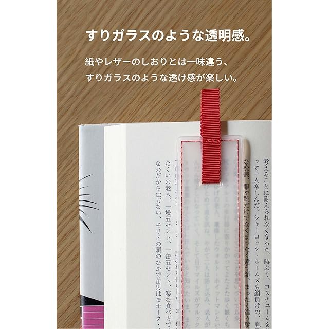 すりガラスのような透明感。紙やレザーのしおりとは一味違う、さらっとした触り心地とすりガラスのような透け感が楽しい。
