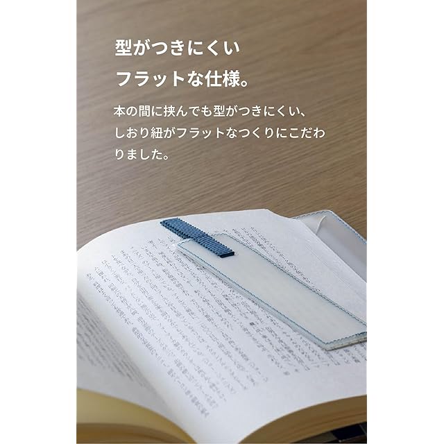 型がつきにくいフラットな仕様。本の間に挟んでも型がつきにくい、しおり紐がフラットなつくりにこだわりました。