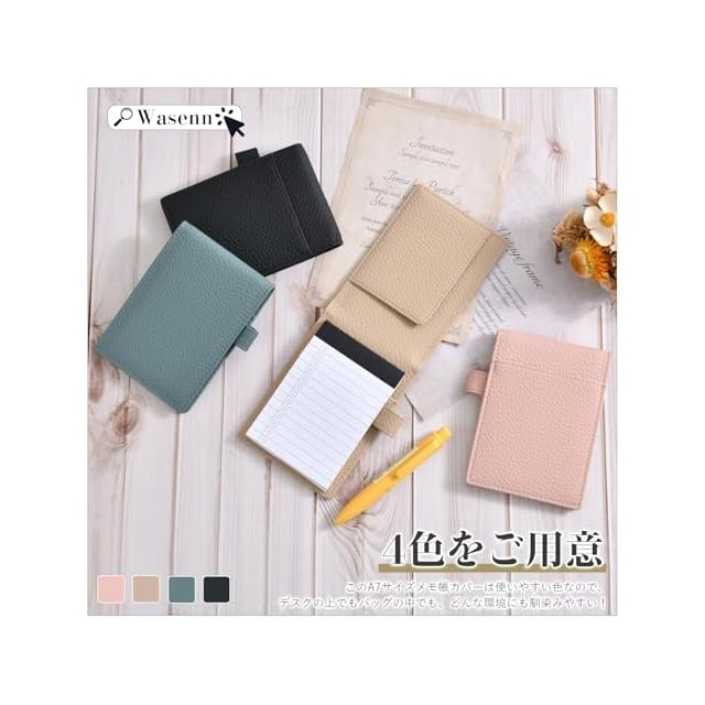 Wasenn A7 メモ帳 カバー ミニ 可愛い 縦型 メモカバー 薄い ノートカバー ペンホルダー付き カードポケット メモ用紙カバー PU革製カバー 携帯に便利 ノートメモ帳 ポケット入れ 便利 仕事 アプリコット