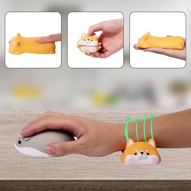 かわいい黄色い柴犬の形状マウス用リストレストはとても柔らかいです。手首に適合し、腕と手首のための人体工学的なサポートをご提供します。