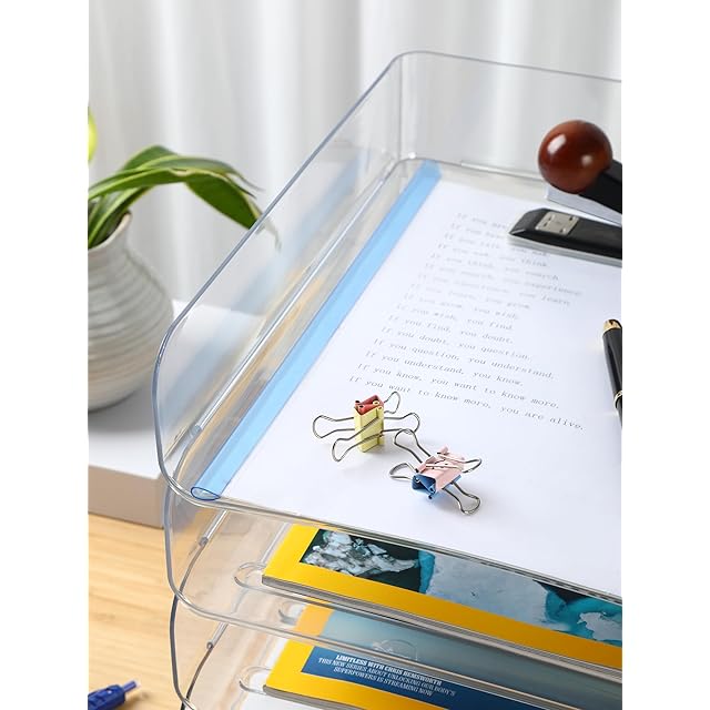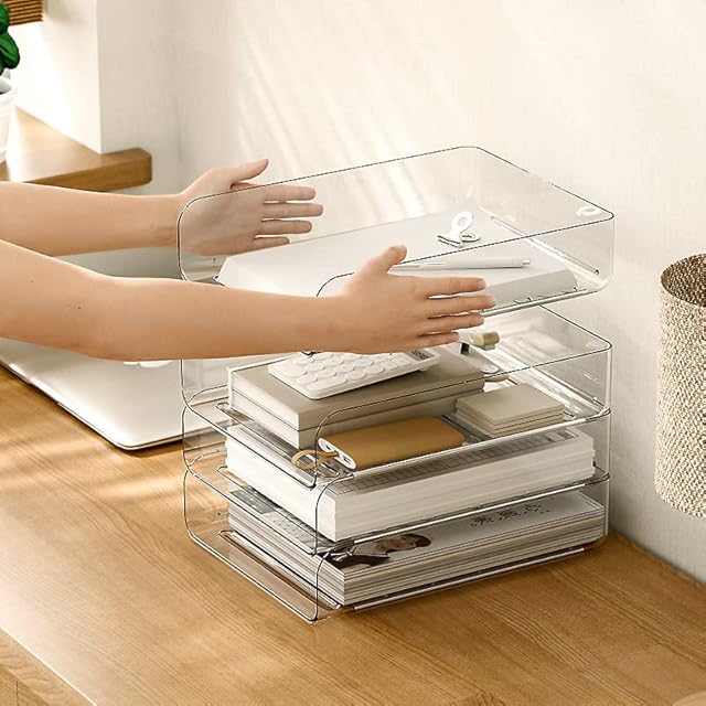 A4縦置き3段書類トレー、レターケース 、レタートレイ、ブックなど収納 (3pcs/セット、クリア)