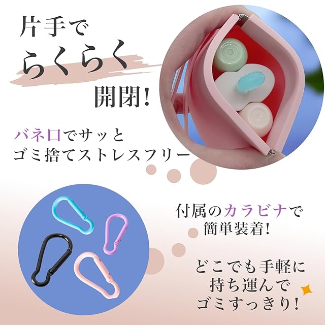持ち運びやすい: カラビナ付きで、バッグやベルトループに簡単に取り付けることができます。移動中や外出先でも手軽にゴミを処理できるため、便利さが向上します。