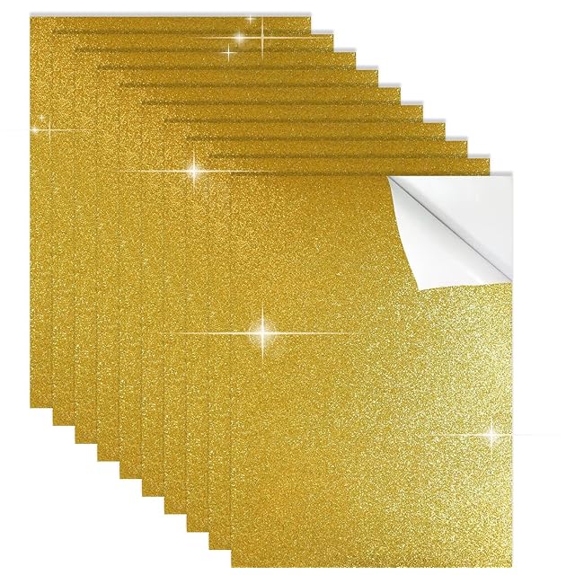 グリッターシート シールタイプ A4サイズ グリッターシール グリッター 金 自由に切って 粘着あり ラメ シール 応援 コンサート うちわ 推し活 デコ ステッカー、オリジナルシールの制作に【ゴールド 10枚】応援うちわ ジャンボうちわ きらきらぷんぷん丸 GS-004