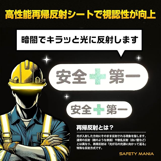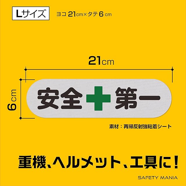 安全第一 ステッカー 反射素材 夜間作業 剥がれにくい 角丸 耐候 耐水 (シルバー(反射素材), L)
