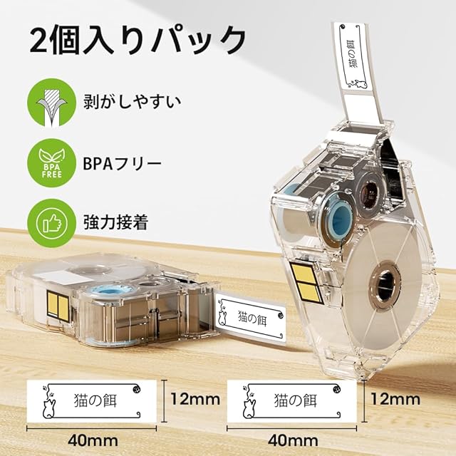Phomemo A30対応 熱転写ラベルリボン 白色ギャップラベル リボンステッカー 12mmx40mm 黒文字印刷済み 2巻セット 整理収納/注意表示/タグ用