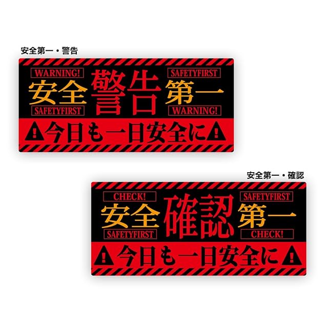 Biijo エヴァ風 安全第一 ステッカー 工事現場 防水・耐熱 シール(安全第一・確認,Lサイズタテ126mm×ヨコ290mm)