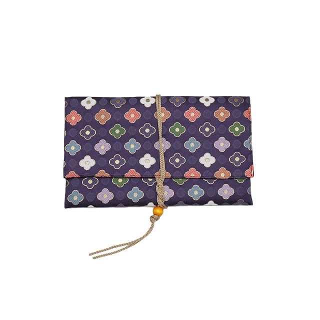 金襴 西陣織 御朱印帳入れ 御朱印帳袋 御朱印帳ケース 御朱印帳カバー 紐 日本製 大判サイズ (茄子紺)