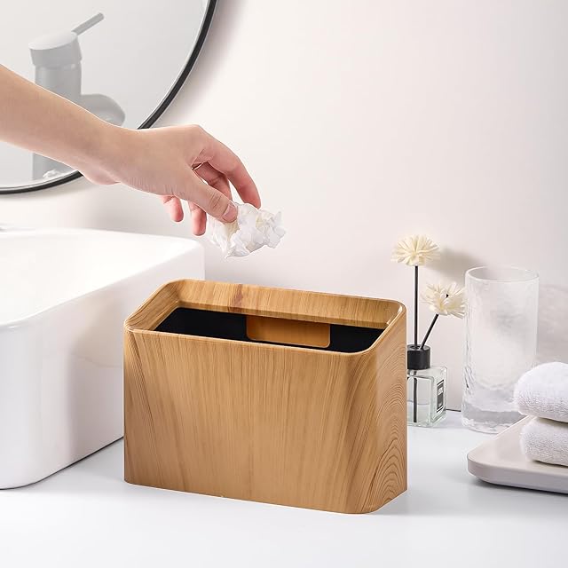 ETRAVEL 卓上ゴミ箱 ダストボックス 模造木製 小さい ミニゴミ箱 おしゃれ シンプル ゴミ入れ ゴミ袋 隠せる 寝室 オフィス くず入れ インテリア (褐色)