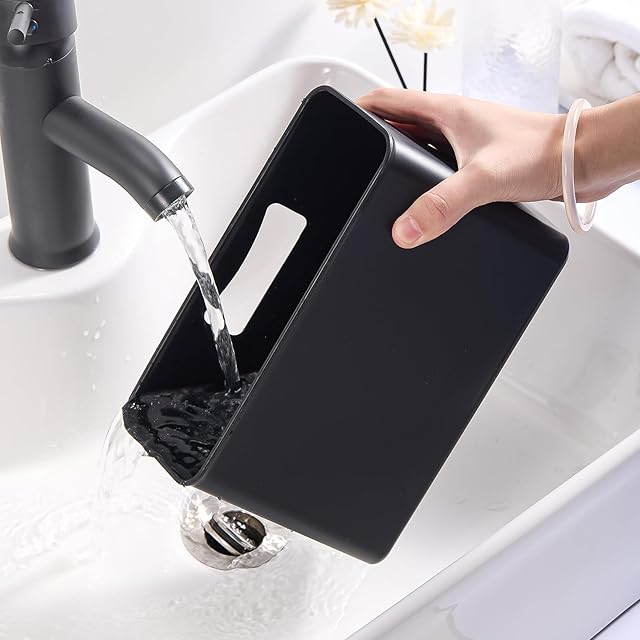 ふたがない卓上ごみ箱。広くて斜めになった開口部。綿パッド、ティッシュペーパー、髪の毛、デンタルフロスなど、サイズが小さいゴミは、いつでも片付けられる。
