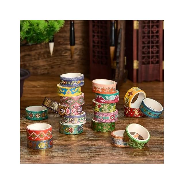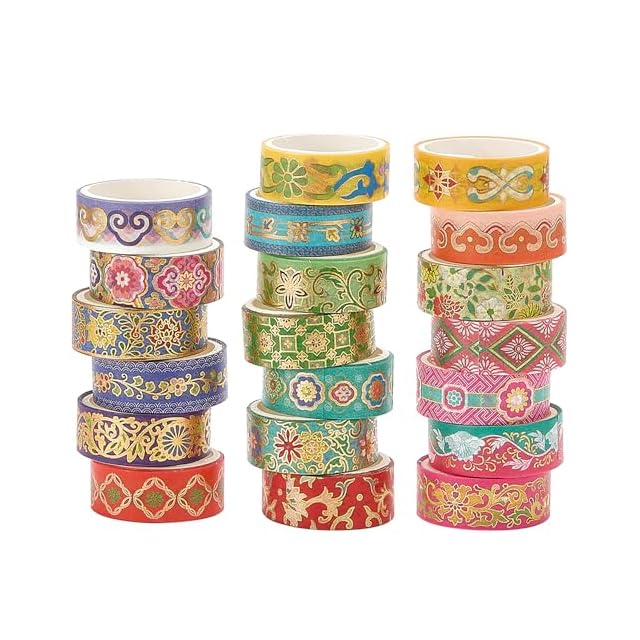 YUBBAEX 20巻セット 中国風マスキングテープ 花柄・幾何学模様 和紙テープ 金箔 フローラルデコレーションテープ DIYクラフト、バレットジャーナル、プランナー、スクラップブッキング、カード/ギフトラッピング用 (古風)