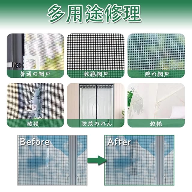 5. 多用途修理:網戸だけでなく、カーテン、蚊帳、テントの網など、さまざまな網目製品の修理に対応可能です。