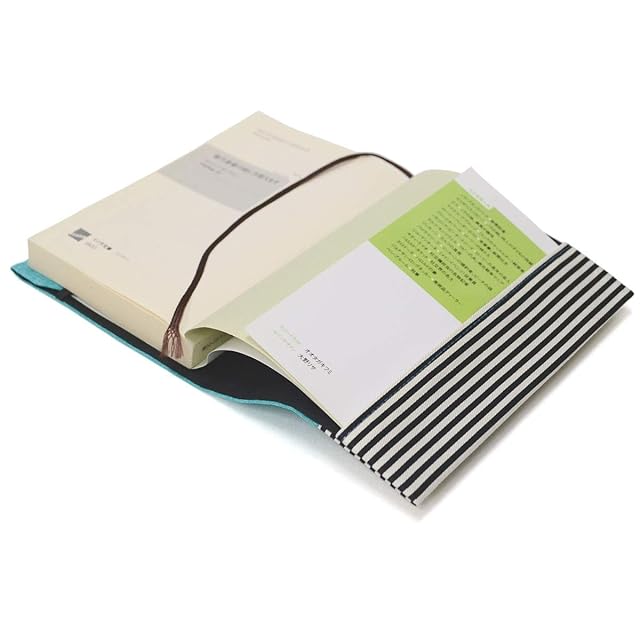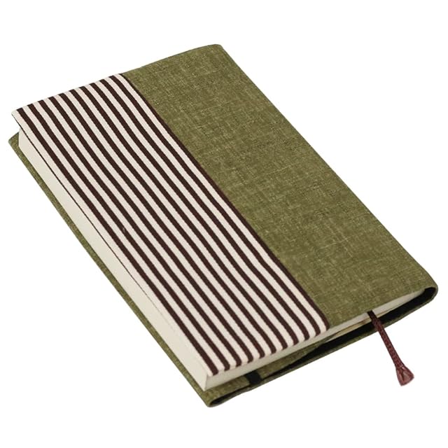栞紐つきブックカバー 無地 ストライプ *6130000697994* (オリーブグリーン)