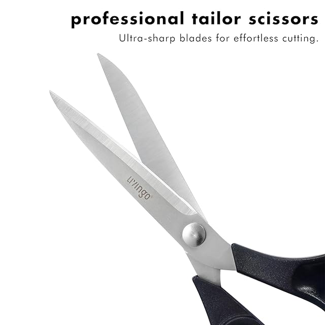 LIVINGO 精密カットに最適なカーブ刃採用の裁ちばさみ 26cm 右利き用 鋭い刃で多層布もスムーズに裁断 家庭・オフィス・学校・裁縫店に最適 快適な握り心地の黒いプラスチックハンドル たちばさみ