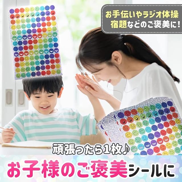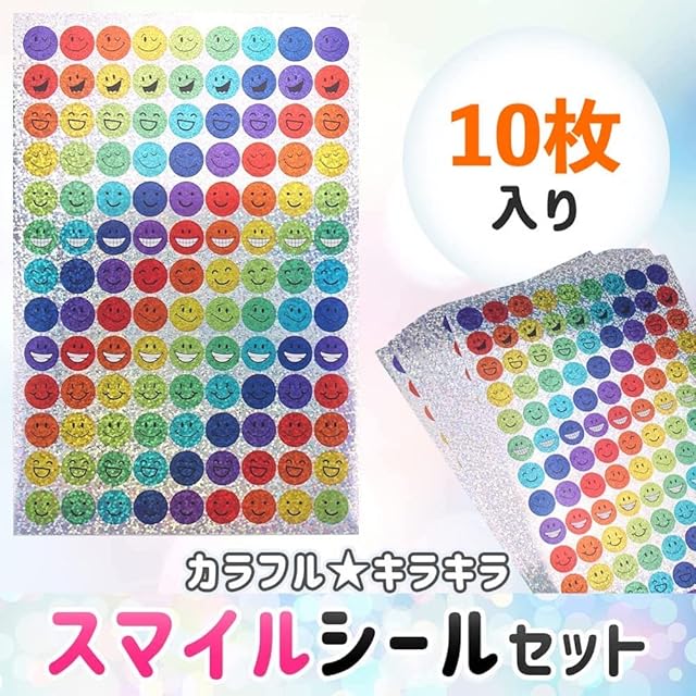 キラキラシール ご褒美ステッカー 11種類 笑顔デザイン カラフル 業務用 宿題 トイトレ お手伝い (10枚)