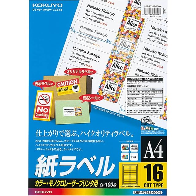コクヨ(KOKUYO) カラーレーザー カラーコピー ラベル 16面 100枚 LBP-F7162-100N