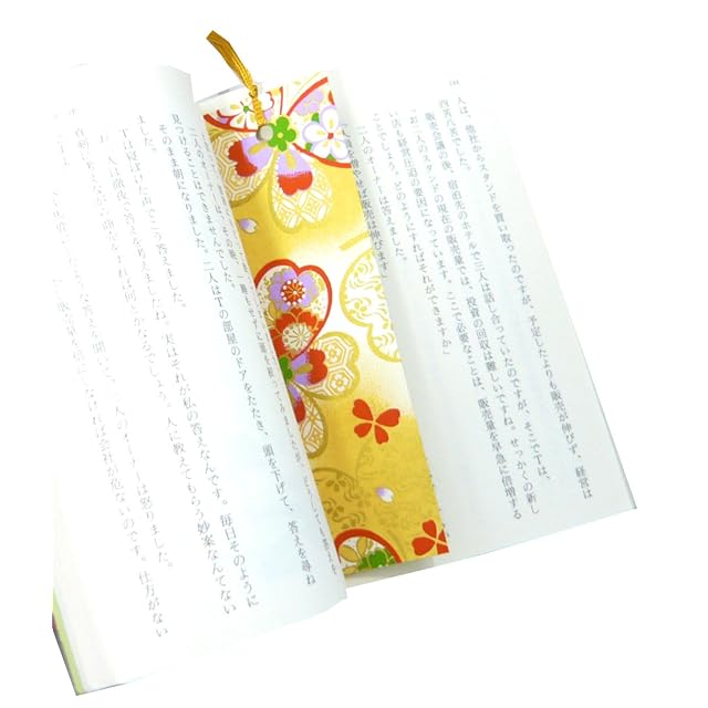 【柄について】大判の友禅和紙をしおりサイズに切り分けておりますので、柄の位置や色が見本画像と異なる場合もございます。 表の1枚目は画像と同じ友禅和紙ですが、柄は定期的にリニューアルしておりますので以降の2枚目~6枚目は画像と異なる柄がセットされている場合もございます。