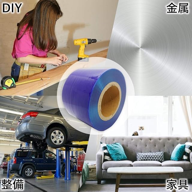 商品名:(アウプル) 表面 保護 フィルム 養生 テープ 幅10cm 長さ 200m 青 半透明 弱粘着 シート ロール マスキング テープ 傷防止 塗装 整備 DIY 自動車