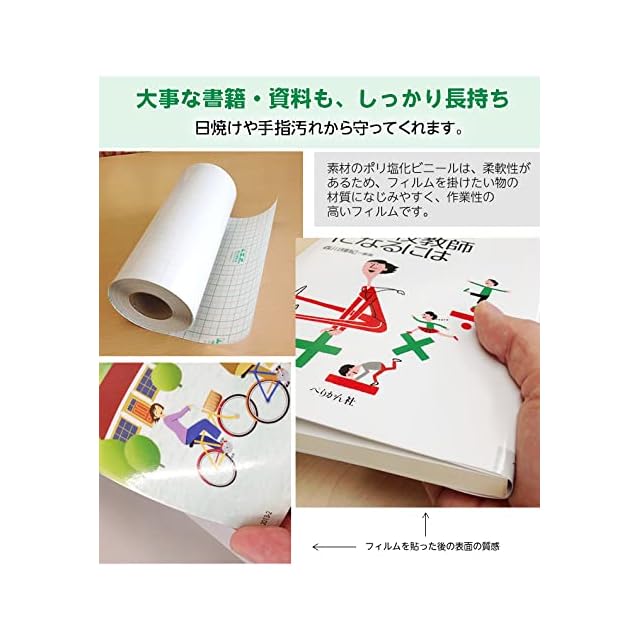 <p>初めて本にフィルムを貼ろうとお考えの方に!<br> このセットがあれば届いたその日に本にフィルムを貼ることができます^0^♪</p> <p> 空気が入らないようきれいにフィルムを貼るのに便利な、目盛りの入っていない専用定規。<br> フィルムをカットするときにとても便利な、糊がくっつきにくい専用のボンドフリーハサミ。</p> <p>★公共図書館で長年愛用されている信頼と実績の商品!<br> 三菱化学(株)の技術協力を得てつくられたこのコートフィルムは、フィルム、粘着剤、剥離紙とも厚生労働省の食品衛生法基準をクリア。からだに害を及ぼす物質は含まれていません。極めて安全性の高い製品です。</p> <p>◆書籍をキズ・汚れ・紫外線から守る、透明ラミネートシールです。ロールタイプで、必要な長さに応じてカットして使います。裏の剥離紙には1cm四方のマス目が入っているからカットしやすいです。<br> ◆ピッチン、マルチコートフィルムでは量が足りない方におすすめ。(※やや柔らかい素材を使用しています)<br> ◆自分でカットして貼るのでどんな形状のものにも貼ることができます。<br> ◆製造直売で安心品質。業務用だからとってもお得!<br> ※現在は貼り方のDVDはお付けしていません。YOUTUBEにて「ブックコートフィルム」で検索していただくと貼り方の動画をご用意しております。ご覧ください。</p> <p>■材質・仕様<br> ・フィルム:ポリ塩化ビニール(UVカット仕様):フィルム厚80ミクロン、エンボス加工、剥離紙 ※いずれも可燃ごみ処理可能<br> ・定規:アクリル<br> ・ハサミ:ステンレス</p>