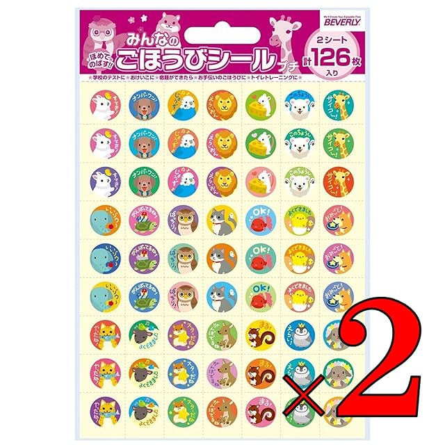 商品名:【2袋セット】 みんなのごほうびシール プチA 126枚入 SL-146 まとめ買い 不織布ふきん付き ご褒美シール 台紙付き トイトレ トイレトレーニング 大量 ステッカー 可愛い