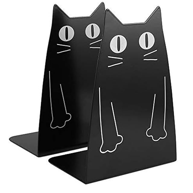 Hisredsun かわいい猫の金属製のブックエンド、大きな頑丈なブックエンド デスクトップのブックホルダーオーガナイザー ブックエンドは棚のために