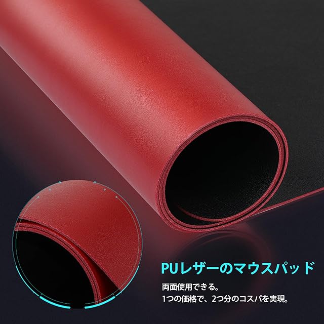 【一番快適な操作面】お手入れが簡単なPUレザー素材を使用し、表裏異なるカラーで選択肢が広がります。また、精度の高いマウス操作ができ、デスク上の安定感も向上します。(ご注意:天然ゴムの匂いは数日の換気後に消失します。)