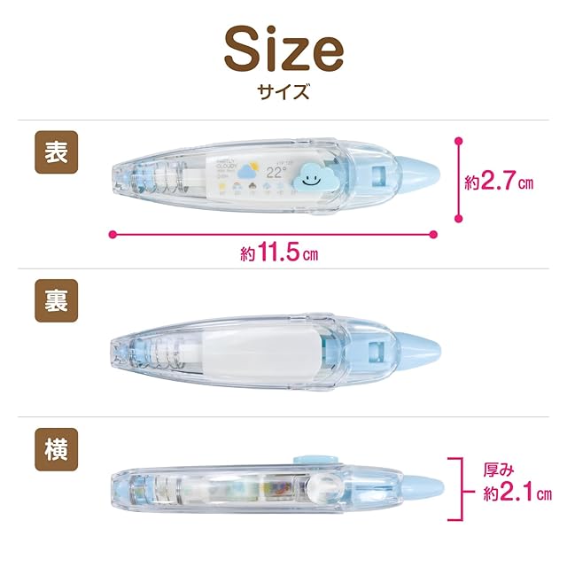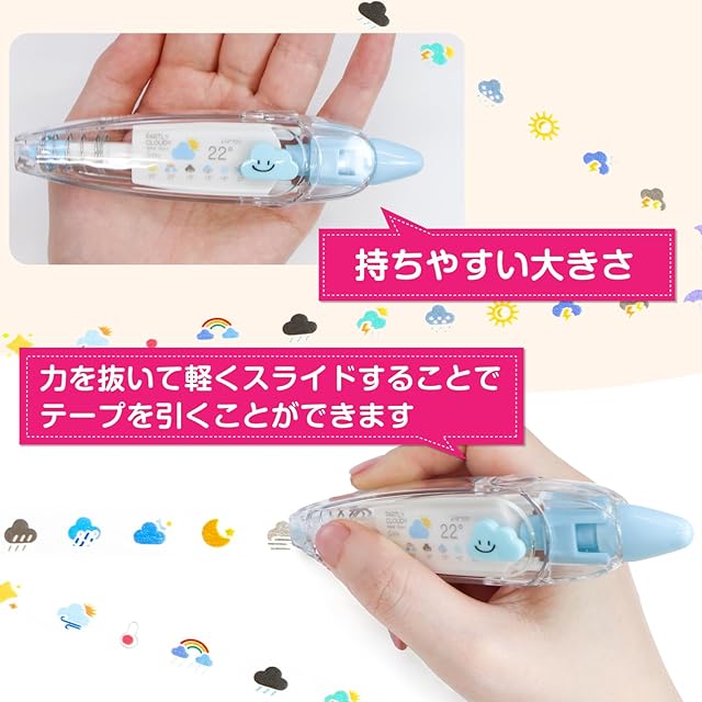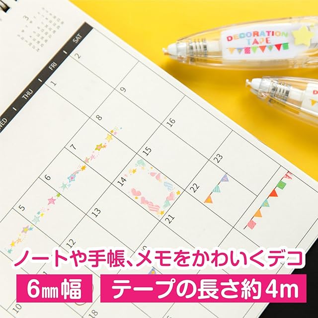 【特徴】手帳・ノートやアルバムなどをかわいくデコレーションできるノック式のテープペンです。裏面に響きにくいので前後のページも書きやすいです。