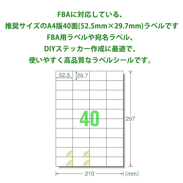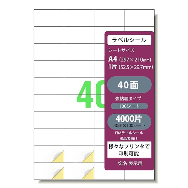 商品名:ラベルシール 出品者向け FBA 商品 ラベル 用紙 40面 100シート 4000枚 A4 FBAラベル インクジェットプリンター レーザープリンター両用 シール用紙