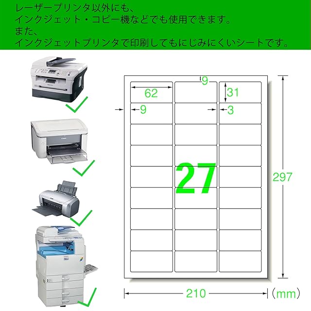3.プリンタ対応:インクジェットプリンタ、レーザープリンタどちらにも対応しており、鮮明で高品質な印刷が可能です。